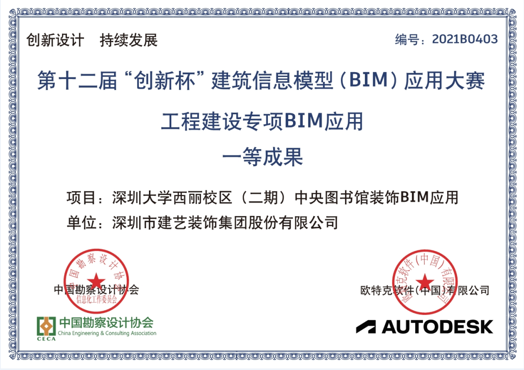 建艺集团利用BIM技术提高精细化建造水平,建造质量精品工程,通过BIM模型进行深化设计,优化施工方案、施工节点、材料排版,利用模型生成精装修深化排布图纸,指导现场施工,同时基于BIM模型,对方案安全性、合理性、可建造性等方面进行审核,做到提前更正,降低变更风险,提高工程质量。在提升提高工作效率方面更是通过深圳市建筑工务署BIM协同管理平台进行日常维护和管理,使各项目参与方可在同一模型上进行多方位立体沟通,提高信息化管理水平,提供施工效率。凭借创新的BIM应用,项目荣获了第十二届“创新杯”建筑信息模型(BIM)应用大赛工程建设专项BIM应用一等成果的荣誉。