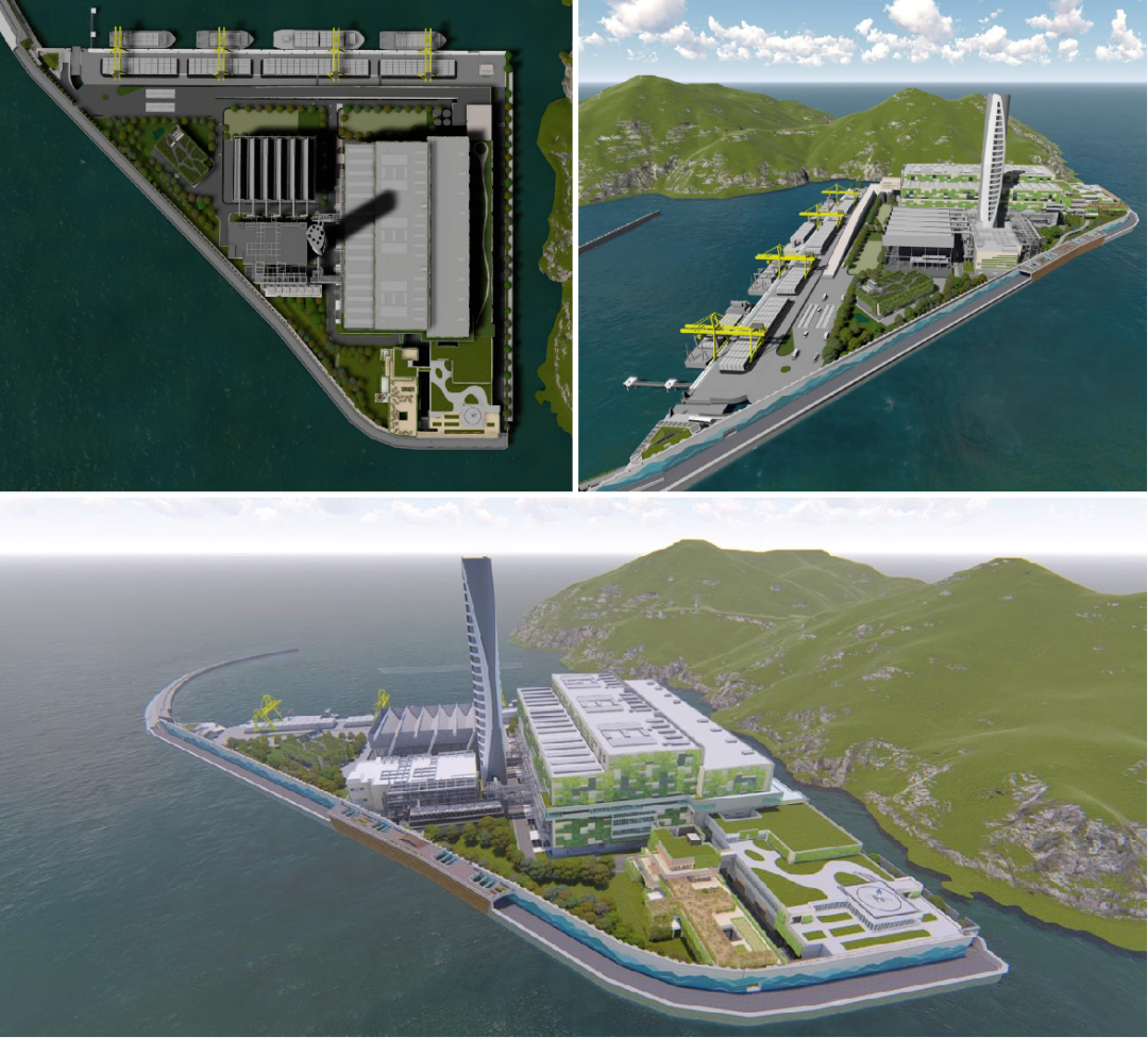 项目位于香港离岛区石鼓洲岛屿南侧海域,将在填海面积约16公顷的新建人工岛上,兴建垃圾焚烧发电设施、垃圾分类回收设施、海水淡化厂、污水处理厂、垃圾接驳码头及环保教育基地等,项目建设有6条600吨/日生活垃圾焚烧线,配套3台55兆瓦汽轮机和发电机。