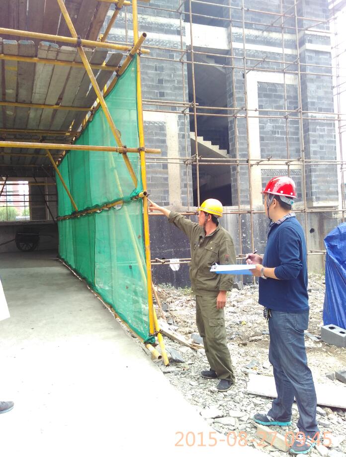 其次,重点做好现场安全检查、加固等工作。主要对宿舍、办公室、食堂、仓库等进行加固和排水设施进行检查,同时对工地围墙及堆料情况进行全面排查,采取防风防雨加固或清理、拆除措施。项目部对此还提出了明确要求:材料堆放不得超高,堆放需整齐稳固,并与围墙留有一定的安全距离。不稳固、达不到抗风能力、短期内无法完成加固的围墙应予以拆除,并设置警示标志。