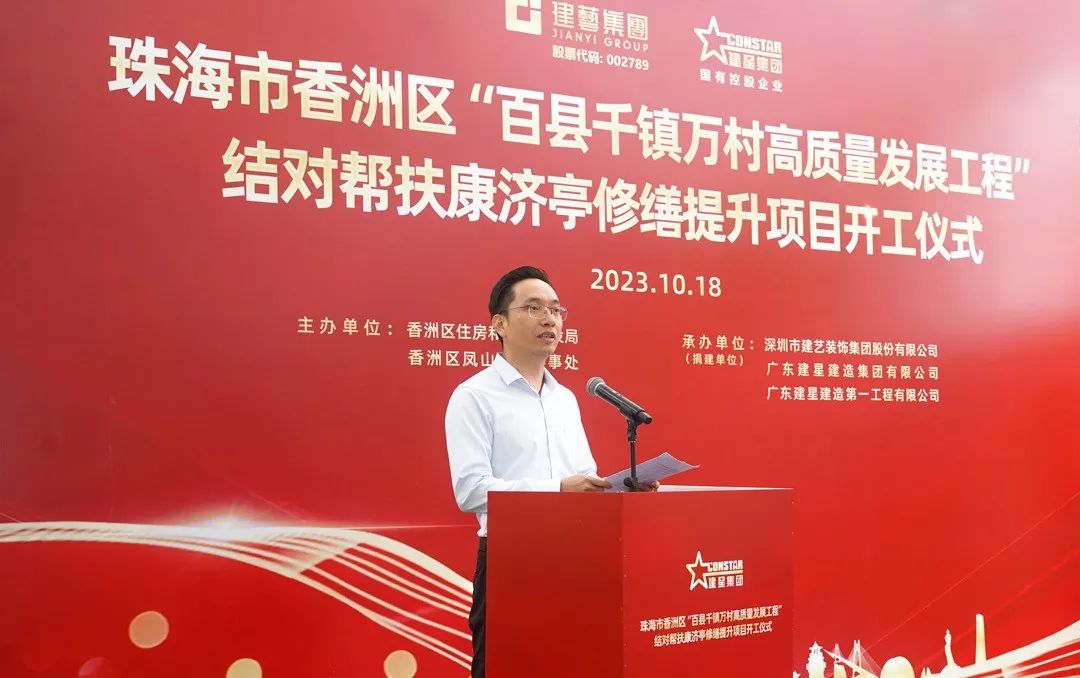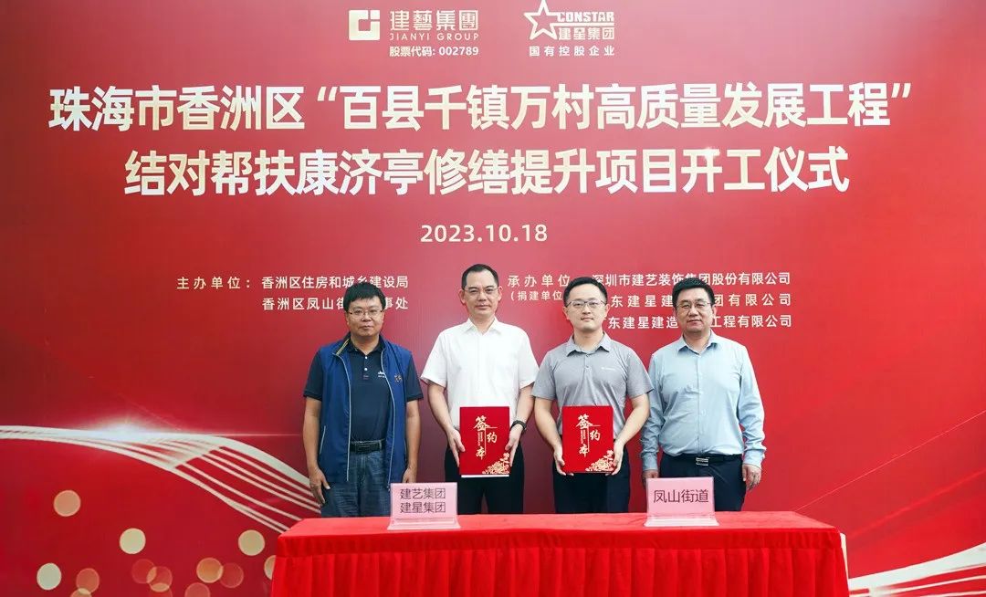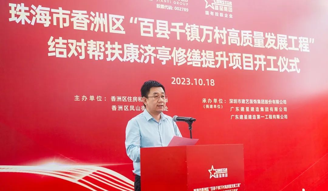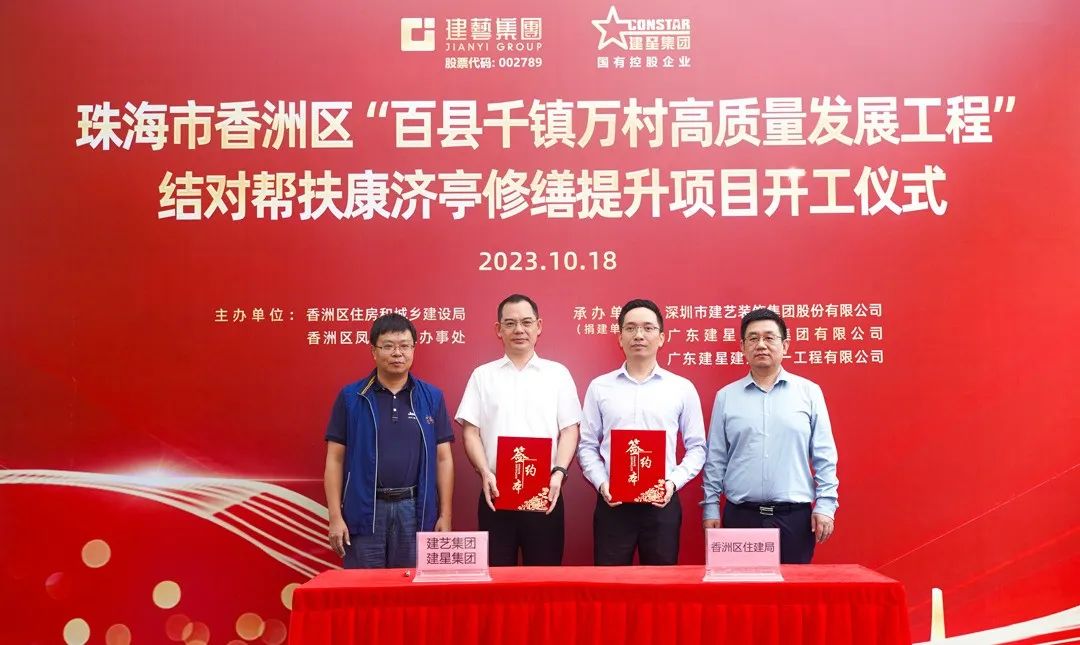今年以来,广东全面吹响了“百县千镇万村高质量发展工程号角,珠海市委市政府全面响应、深入实施,积极动员全市上下快速投入 “百千万工程”样板打造,描绘城乡区域协调发展“新蓝图”。10月18日,建艺集团与旗下控股子公司建星集团结对帮扶“康济亭修缮提升工程”开工仪式在南溪村举行