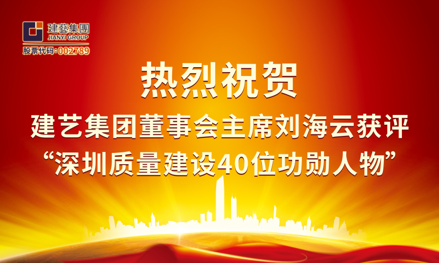 日前,由深圳市质量强市促进会主办的“深圳质量建设40位功勋人物及40位杰出质量人”评选结果正式揭晓,通过企业推荐、资格审查、现场考察(抽查)、专家评审等程序,建艺集团董事会主席刘海云凭借在创建“深圳标准”,打造“深圳质量”,建设“质量强市”工作中的杰出表现,获评为“深圳质量建设40位功勋人物”。
