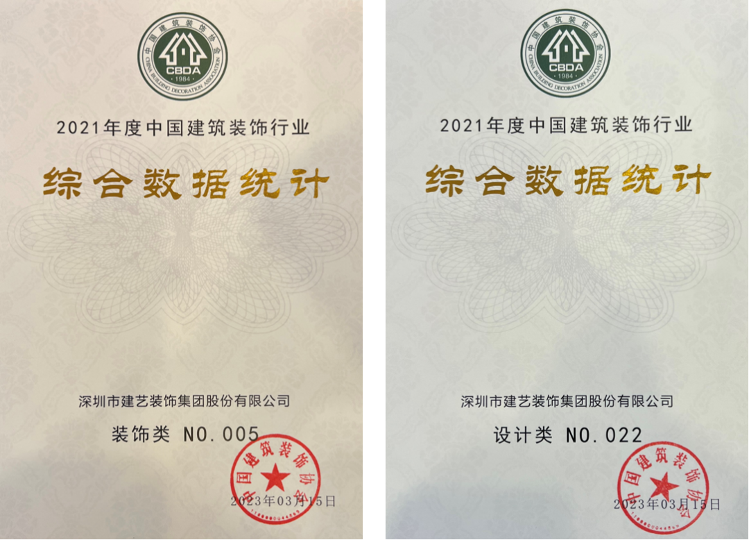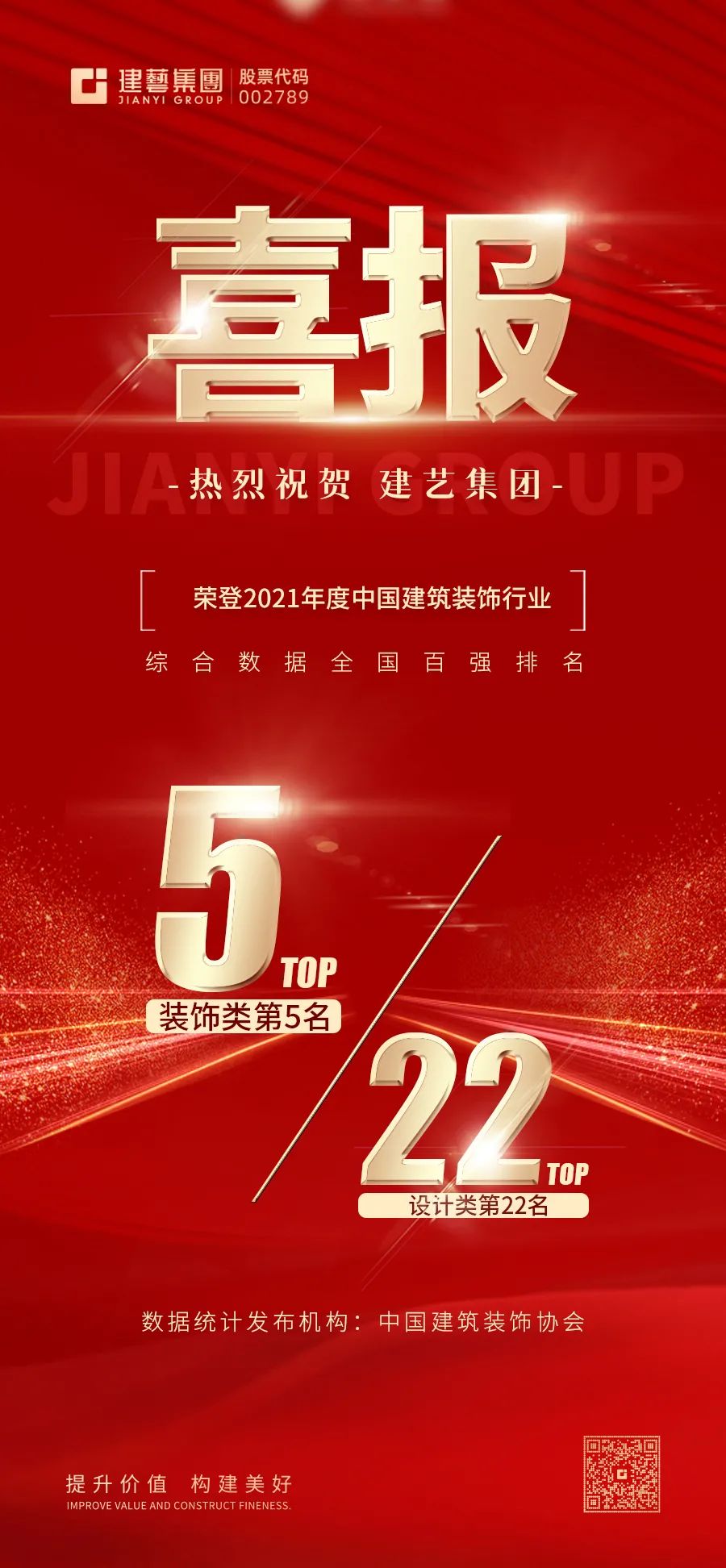 【重磅】建艺集团连续荣登中国建筑装饰行业综合百强榜排名装饰类第5名和设计类第22名
