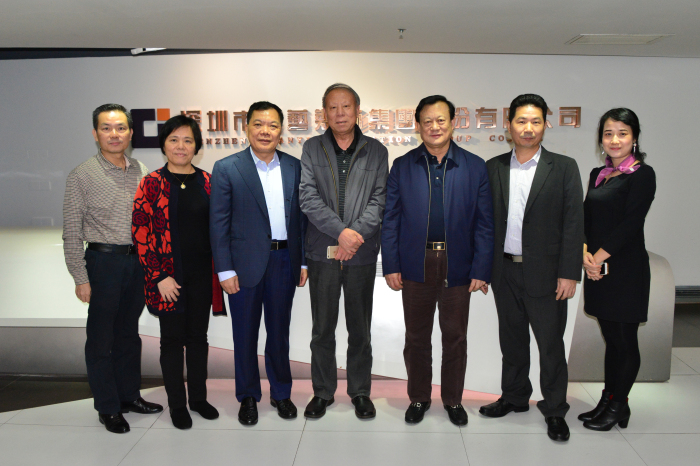 建艺集团董事长兼总裁刘海云(左三)等与中国建筑装饰协会会长李秉仁(左四)、副会长兼秘书长刘晓一(左五)在集团大厅合影