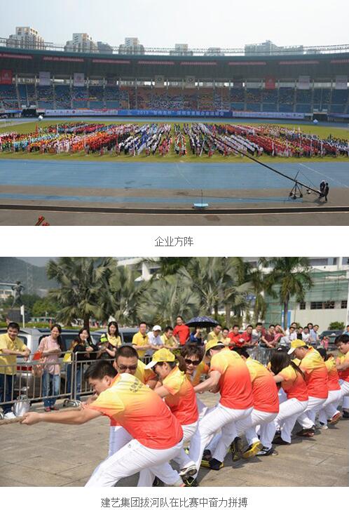 在此次企业运动会中,建艺集团组织总部三十多名员工参加了拔河、趣味接力、动感五环3个项目。在趣味接力比赛中,建艺运动员发扬努力拼搏、团结协作精神,啦啦队努力加油、献计献策,最终在比赛中取得了第六名的好成绩;而在有着号称“滚筒洗衣机”的动感五环比赛中,建艺集团代表队制定了良好的对策,在兼顾速度与稳定的前提下,五环两边、中间与里面的选手齐心协力,推动五环飞速前进,以优异成绩完成了比赛。