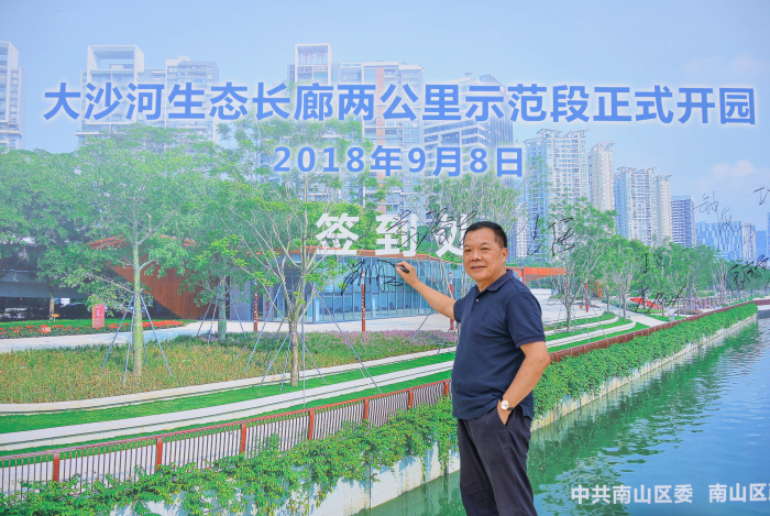 9月8日,深圳南山区大沙河生态长廊举行了大沙河生态长廊示范段开园活动。深圳市委常委、常务副市长刘庆生、南山区委书记王强等一行与市民代表一起参加了开放首日的环廊之行。作为项目建设总承包单位——建艺集团代表,建艺集团、建艺控股董事会主席刘海云出席了大沙河生态长廊示范段开园活动。